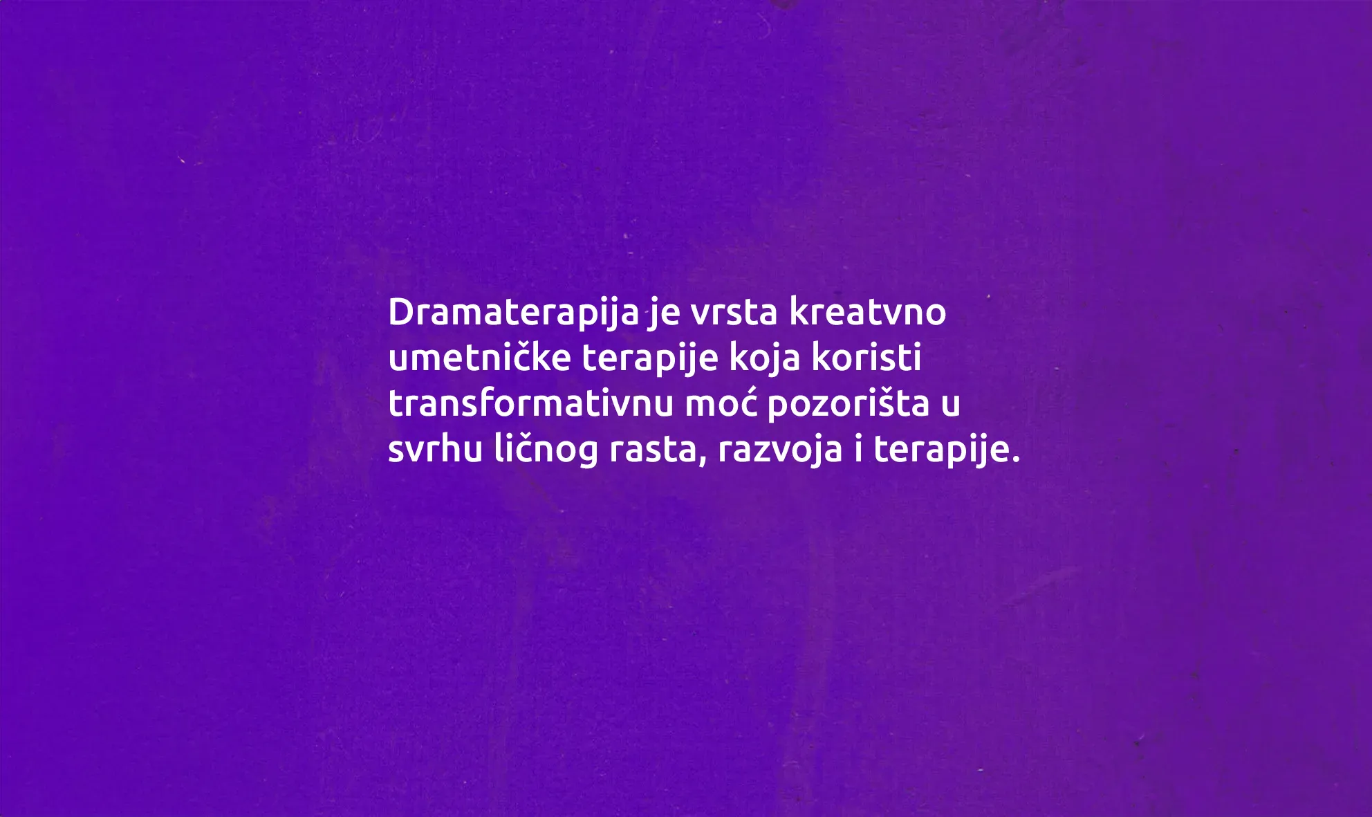 Dramaterapija crpi inspiraciju iz eksperimentalnog pozorišta (Grotowski, Arto) kao i psiholoških pravaca (Jungova psihologija). Kroz ovakav pristup, umetnost, a na prvom mestu pozorište je dostupno svakome, transformiše nas i pruža jedno autentično iskustvo koje nam daje mogućnost da osvestimo različite delove sebe, uključujući one kojih se plašimo, stidimo, potiskujemo. Ono što nam stvara blokade je često potreba koja nije pronašla svoj izraz. Ako joj se pruži mogućnost da se na kreativan način izrazi, ona pronalazi svoje mesto.
